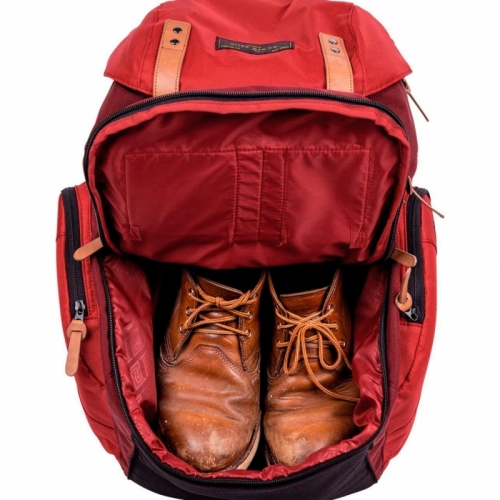 Textilní batoh. Objem 42 l. Fleecem vystlaná kapsa na brýle a podobně choulostivé věci, vypolstrovaná kapsa na 17" notebook, vnitřní kapsa na kabely a nabíječky, prostorná přední kapsa s organizérem. Speciální oddělení na boty nebo jiné špinavé či mokré věci s přístupem zespodu. Postranní kapsy, vyztužená záda.
