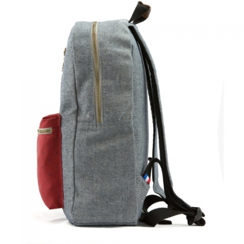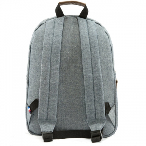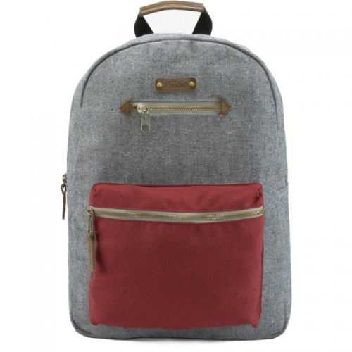 Menší batůžek s rozměry 29,5 x 14 x 41 cm, materiál bavlna a polyester. V hlavním oddělení je kapsa na notebook a jedna kapsa na zip. Jedna kapsa na zip je v přední části. Batoh snadno uchopíte za kůží podložené ucho, záda jsou polstrovaná pěnovým materiálem. Ramenní popruhy jsou vycpané a prošité. Na batohu je několik kožených nášivek. Zipy jsou kovové.