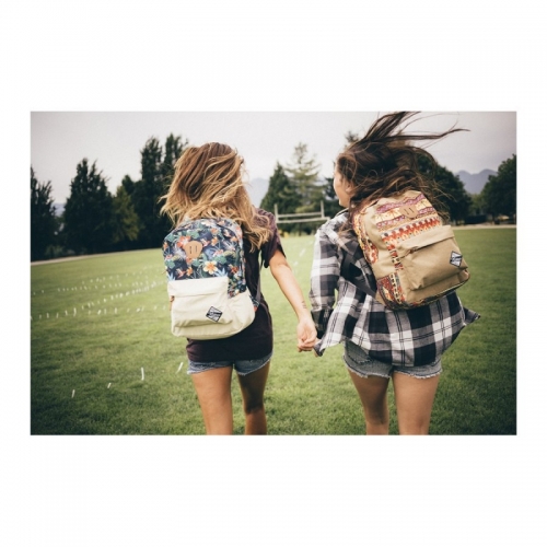 Menší batoh s pohodlnými polstrovanými popruhy, přední kapsou na zip, polstrovanou kapsou na 15" notebook a doplňky z veganské kůže.