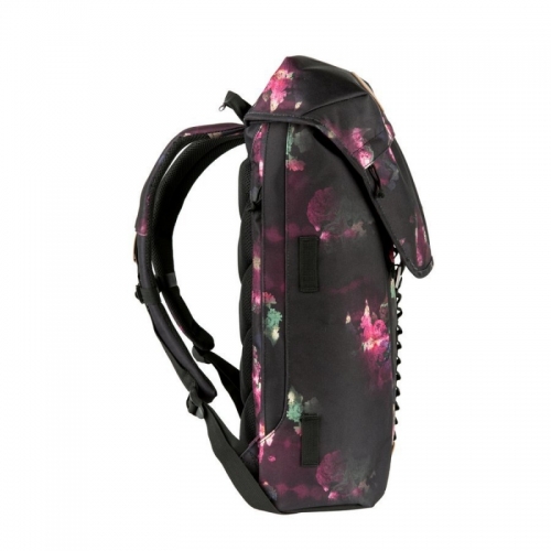 Vypolstrovaná kapsa na 15" notebook s bočním vstupem, vypolstrovaná kapsa na tablet, hlavní kapsa uzavíratelná na šňůru, přes je "chlopeň" s kapsou, která se zapíná na kovový háček. Další kapsa je na boku. Pásky jsou z veganské kůže.