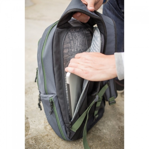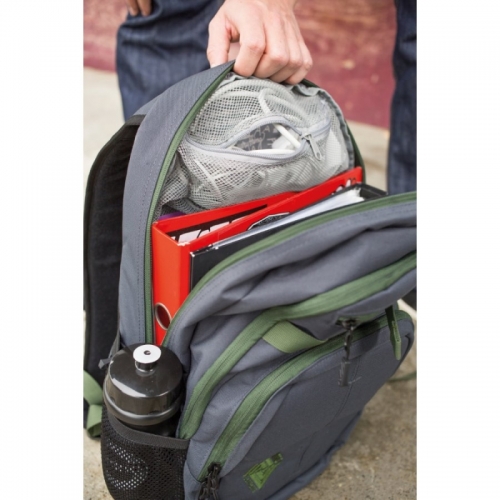 Textilní batoh. Objem 35 l. Fleecem vystlaná kapsa na brýle a podobně choulostivé věci, vypolstrovaná kapsa na 17" notebook - skrytá pod "zády" batohu a na samostatný, nenápadný zip. Dvě hlavní prostorná oddělení, prostorný organizér, vnitřní kapsa na suchý zip, vhodná pro nabíječky, kabely tad., popruh na skateboard, boční síťka na lahev, boční polstrovaná kapsa na zip. Rozměry přibližně 51 x 37 x 23 cm. Materiál 600D polyester, hmotnost 860 g.