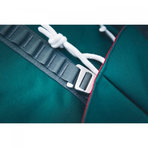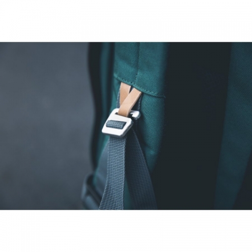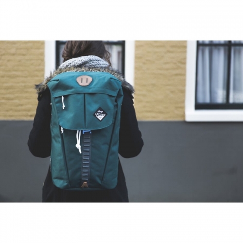 Textilní batoh. Objem 28L. Vypolstrovaná kapsa na 15" notebook s bočním vstupem, vypolstrovaná kapsa na tablet, hlavní kapsa uzavíratelná na šňůru, přes je "chlopeň" s kapsou, která se zapíná na kovový háček. Další kapsy na a pásky z veganské kůže. Rozměry přibližně 46 x 28 x 16 cm. Materiál 600D polyester, hmotnost 600 g. .