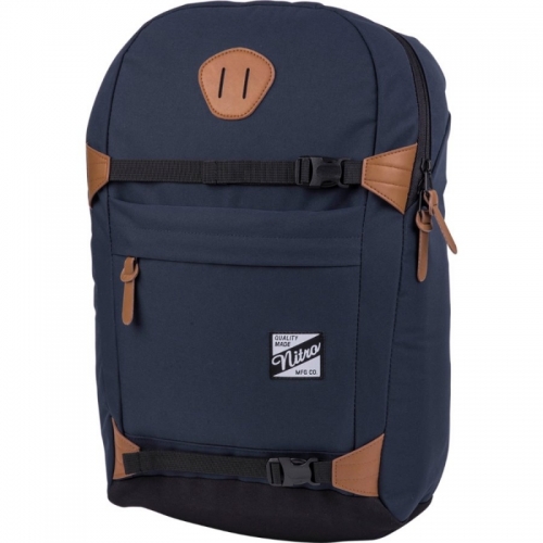 Textilní batoh. Objem 24l. Vypolstrovaná kapsa na 15" notebook, vypolstrovaná kapsa na tablet, prostorná přední kapsa s organizérem, popruhy na upnutí skateboardu, detaily veganské kůže. Rozměry přibližně 44 x 30 x 16 cm. Materiál 93% bavlna, 7% spandex stretch denim. Hnotmost 600 g.