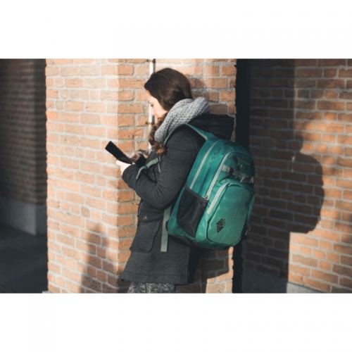 Fleecem vystlaná kapsa na brýle a podobně choulostivé věci, vypolstrovaná kapsa na 17" notebook - skrytá pod "zády" batohu a na samostatný, nenápadný zip. Dvě hlavní prostorná oddělení, prostorný organizér, vnitřní kapsa na suchý zip, vhodná pro nabíječky, kabely tad., popruh na skateboard, boční síťka na lahev, boční polstrovaná kapsa na zip. Rozměry přibližně 51 x 37 x 23 cm. Materiál 600D polyester, hmotnost 860 g.