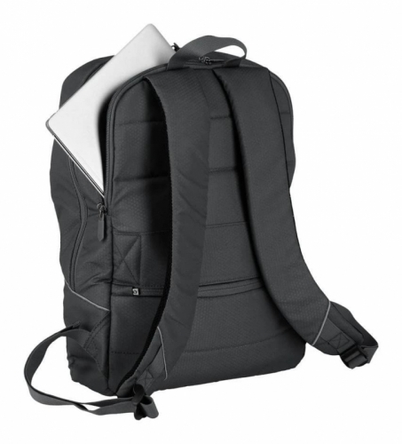 Extra lehký městský batoh z recyklovaného polyesteru s kapsou na 15,6" notebook a popruhem pro nasunutí na madlo kufru vhodný na cesty do práce i volný čas.