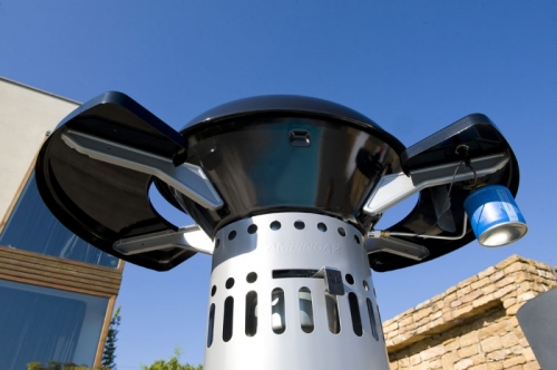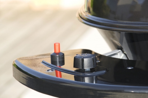 Air Control SystemRegulaci přívodu vzduchu zajišťuje páčka umístěná na podstavci grilu a klapka na víku. Postupným prouděním vzduchu vzniká komínový efekt, který urychluje fázi předehřevu průběžným rozdmýcháváním dřevěného uhlí. Regulace přívodu vzduchu je důležitá pro následné ovlivnění teploty grilování a lepší výkonu grilu.