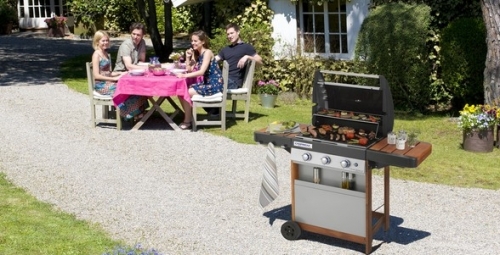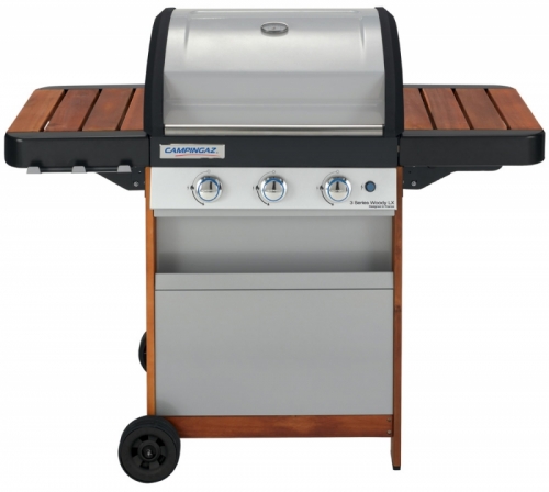 Kontaktní plynový gril se třemi trubkovými hořáky z nerezu a konstrukcí z akátového dřeva. Grilovací plocha je rozdělená na litinový tál a rošt Culinary Modular pro snadnou přípravu pizzy, marinované drůbeže, paelly či asijských pokrmů na pánvi wok. InstaClean™ systém umožňuje vyjmutí jednotlivých dílů grilovací vany a jejich umývání v myčce. Pomocí ovládacích knoflíků a teploměru lze pohodlně regulovat teplotu. Obsahuje přední plechový kryt s přihrádkou na koření či grilovací přísady a podporu plynové lahve. Elektronické zapalování. Vyklápěcí rošt pro pozvolné grilování a ohřívání.