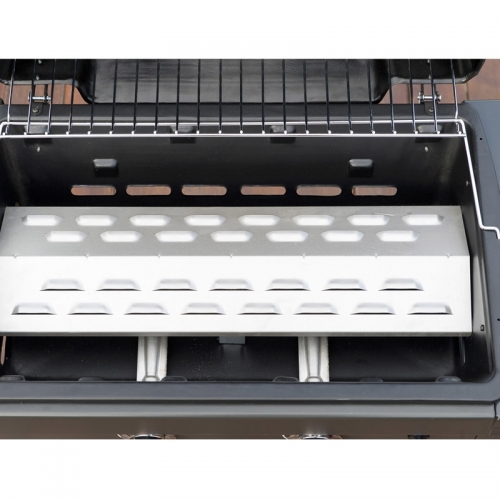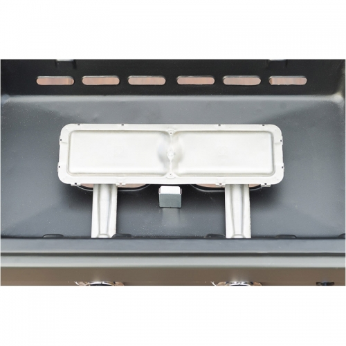 Kontaktní plynový gril se dvěma plochými hořáky z aluminizované oceli, umožňujícími nezávislého grilování pouze na polovině nebo na celé ploše grilu. Pomocí ovládacích knoflíků a teploměru lze pohodlně regulovat teplotu. Obsahuje přední přihrádku na koření či grilovací přísady a podporu plynové lahve. Piezo zapalování.