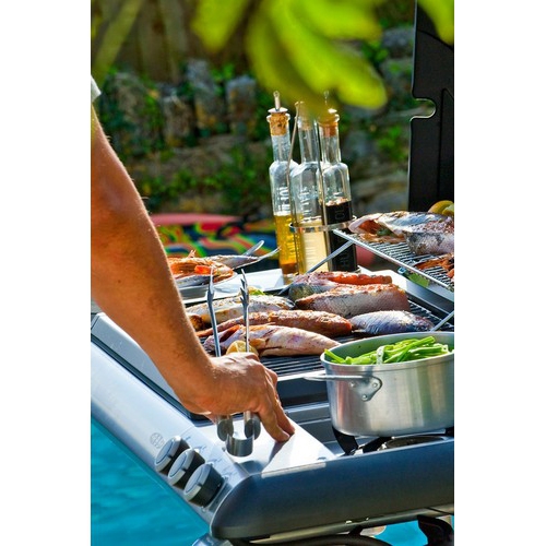 místo druhého postranního stolku navíc vařič pro přípravu omáček a příloh (výkon 2,3 kW, spotřeba 167 g/h)