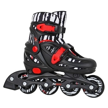 Dětské nastavitelné brusle FunActiv pro rekreační bruslení. Brusle mají jednoduchý a pohodlný systém nastavení velikosti pomocí postranního tlačítka.