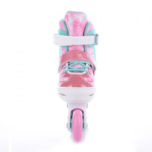Snadné nastavení velikosti probíhá stiskem tlačítka pod patou a posunutím přední části brusle až o 3 velikosti. Díky tomu brusle rostou spolu s dítětem.