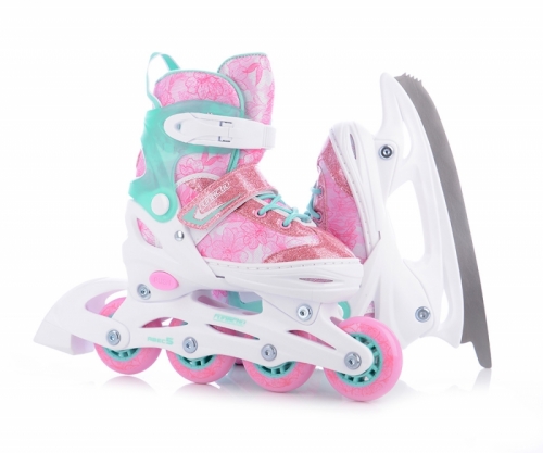 FunActiv TRILO 4in1 GIRL jsou univerzální roztahovací dětské brusle, které díky chytré konstrukci nabídnou hned čtyři různé varianty použití. Jediný model tak dětem umožní bruslit na ledě, jezdit na inlinech, učit se stabilitu na širokém podvozku a vyzkoušet i styl jízdy na quad kolečkových bruslích – bez nutnosti kupovat více párů.