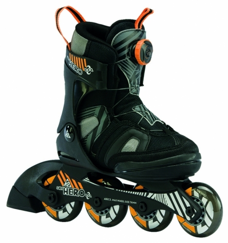 Brusle K2 SK8 Hero Boa lze stejně jako další brusle z juniorské řady K2 jednoduše rozměrově přizpůsobit pomocí jednotlačítkového mechanismu. Získáte tak až pět velikostí, takže inline brusle poroste s nohou dítěte. Kolečka o průměru 76mm a ložiska ABEC 3, Composite rám perfektně přenášející sílu z nich dělají perfektní kolečkové brusle K2 pro mladé pány bruslaře, kteří už nám trocha povyrostli a nebojí se do toho pořádně opřít. Zapínání Boa nabízí maximální pohodlí, pevné držení nohy a snadné nazouvání. Samozřejmostí je specificky dětský tvar, který bude hýčkat nohu našich malých bruslařů komfortem díky patentované měkké botě K2 Softboot, která si zapamatuje tvar chodidla. Chytré a samozřejmě certifikované dětské kolečkové brusle nově bez přidaného PVC!