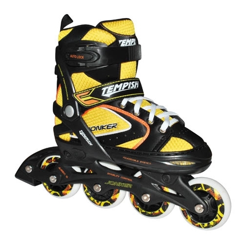Dětské roztahovací brusle se 3 velikostmi, určené pro rekreační a kondiční bruslení. Střední zátěž, začínající i pokročilí bruslaři. Stupeň únosnosti sportovního zatížení 2. Brusle mají jednoduchý a pohodlný systém zvětšení velikosti tlačítkem na boční straně skeletu. U velikosti brusle 29 - 32 pro krátký podvozek jsou jen 3 kolečka 64 mm, u ostatních velikostí 4 kolečka 70 mm. Osazení ložisky ABEC 5.