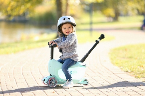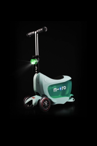 Mini2go Deluxe Plus v mátové barvě je inovativní dětské odrážedlo s úložným prostorem a koloběžka v jednom. Verze PLUS obsahuje řídící tyč pro větší bezpečnost a kontrolu rodiče nad jízdou dítěte.