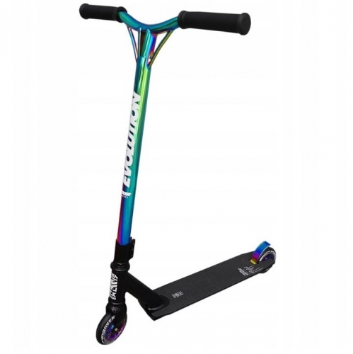 Koloběžka Raven Evolution Series byla vytvořena jako vysoce výkonný model pro freestyle jízdu. Použití vhodných hliníkových slitin a oceli umožnilo zajistit neobvyklou tuhost a odolnost konstrukce při zachování nízké hmotnosti. Řidítka z uhlíkové oceli umožňuje volně provádět různé, i ty nejobtížnější triky dynamickou agresivní jízdu.