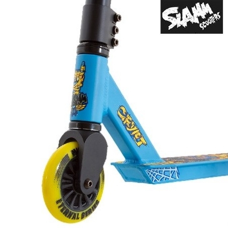 Nová generace Slamm Eternal II úspěšné řady freestyle koloběžek Slamm Mischief Eternal. Vyznačuje se vlastním kompresním systémem IHC, novou lisovanou vidlicí a trendy 110 mm kolečky spolu s novými BMX Style řidítky.