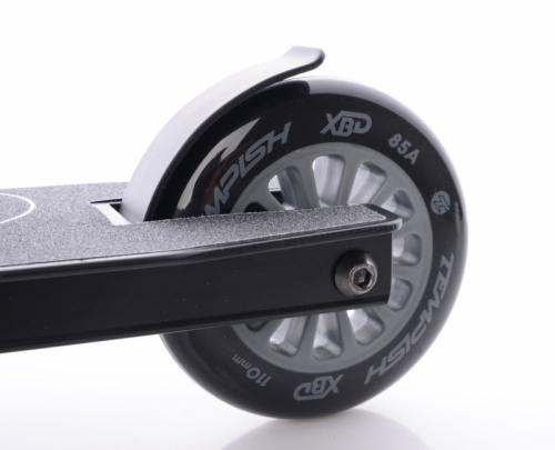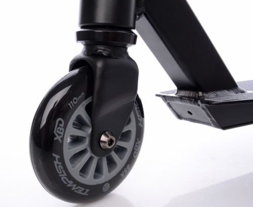 XBD 110 je koloběžka určená k freestylové jízdě. Disponuje kvalitními kolečky 110 mm, HI - rebound 85 A, ložisky ABEC 7 chrome a hlavové složení standard – THREAD, které skvěle tlumí nárazy.