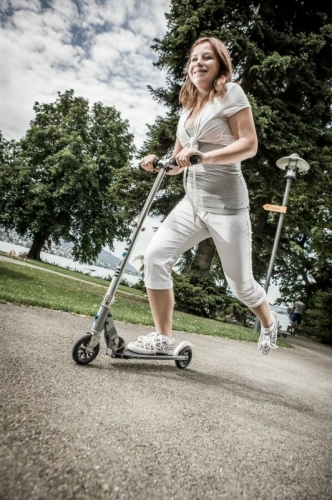 Leštěný povrchový nátěr a v pískově tmavé barvě dává koloběžce originální styl a design. Samozřejmostí je exkluzivní kvalita Micro.
