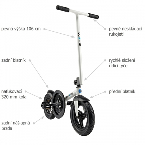 Micro Pedalflow je inovativní, skládací a kompaktní cyklistické kolo bez sedla. Dá se říci, že se jedná o speciální kříženec mezi koloběžkou a kolem.