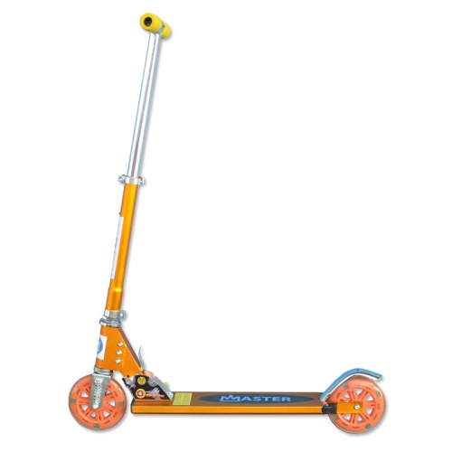 Hliníková lehká  skládací koloběžka s nosností 90 kg. Lehký rám, stavitelná řidítka, odpružené přední kolečko.