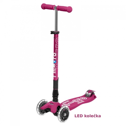 Pohyb Maxi Micro Deluxe zajišťují celkem 4 kolečka s kvalitními ložisky. Přední dvě kolečka mají velikost 120 mm. Jsou osazena LED světly, která nepotřebují baterii a která začnou svítit ve chvíli, kdy se koloběžka rozjede. Zadní dvě 80 mm kolečka jsou umístěna na středové ose tak, aby nepřekážela odrazové noze ani při mohutném odrazu.