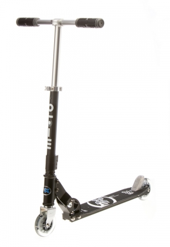 Koloběžka Bullet Street Pro se také pyšní novou, odolnou brzdou (Stunt Break). Agresivní černé provedení dává koloběžce dokonalý design se kterým smete ostatní koloběžky v parku.
