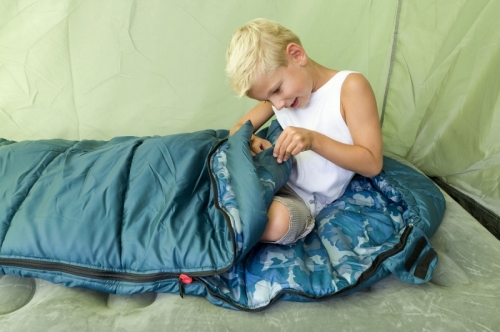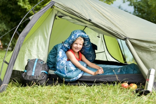 Teply dětský mumiový spacák pro chlapce. Dlouhý zip umožňuje za teplých nocí dobře odvětrávat, a pokud se naopak výrazně ochladí, bude dobrá stahovací kapuce.