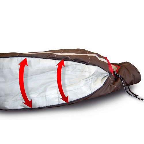 Expediční/zimní spacák s regulovatelnou šířkou. Nejvyšší kvalita poskytující jedinečné klíčové funkce pro spacák a současně zaručující minimální objem ve sbaleném stavu.