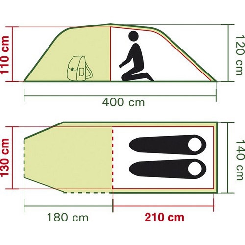 Tunelový stan pro 2 osoby s opravdu velkorysými skladovacími prostory. Je dobrou volbou pro dva aktivní outdoorové nadšence, kteří mají vždy hromadu vybavení pro své sporty.