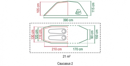 Velmi prostorný a dostatečně lehký tunelový stan. Lomená konstrukce zvětšuje výšku stanu a zároveň zvyšuje odolnost konstrukce proti větru a dešti.