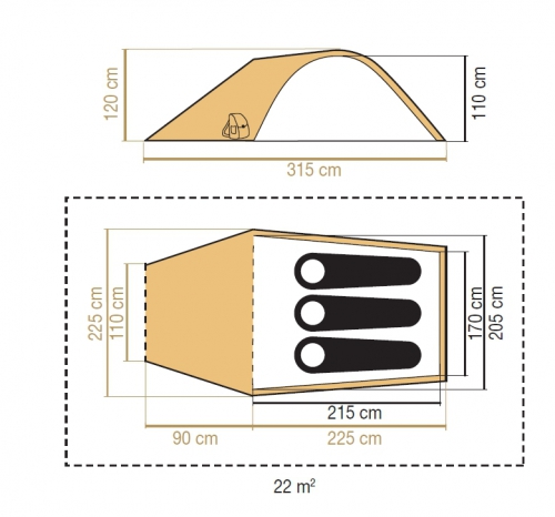Rozměry sbaleného stanu: 49x25x22 cm.