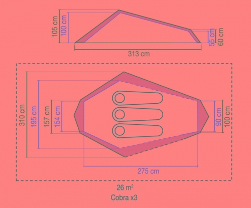 Velmi lehký a relativně prostorný stan pro 3 osoby z kvalitních materiálů. Turistický stan, který je praktický (1 vchod, 1 apsida bez podlážky), snadno se staví (pouze 2 krátké tunýlky a háčky), komfortní a odolný proti větru. Možnost výborného odvětrávání, oba pláště se staví najednou.