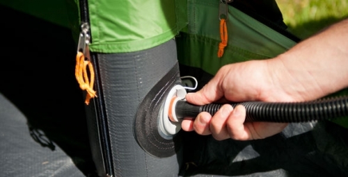 Revoluční technologie odolných nafukovacích stanů se stává realitou. Postavte rodinný stan Valdes 4 sami a během několika minut! Stačí jen nafouknout vysokotlaké vzduchové válce a můžete bydlet. Komfort ubytování dodávají nejmodernější technologie Blackout Bedrooms™ a vyklápěcí dveře na pantech.