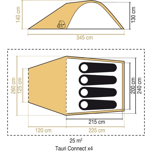 Vnější stan : Polyester ripstop 4000mm PU zátěr, přelepené švy.