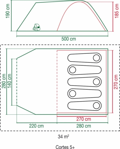 Klasická kopule s vytaženým tunelem jako prostornou předsíní je velmi vyhledávaný druh stanu. Tedy dvouplášťový, tunelový, rodinný stan Coleman Cortes 5 Pluszaujme především rodiny vyhledávající kompaktní lehký a cenově přijatelný stan na vícedenní kempování v přírodě. Je dotažen do posledního detailu: vysoká a integrovaná podlážka umožní halu dokonale uzavřít před nepohodou venku, dvouplášťová ložnice skýtá překvapivě velký komfort a světlá přední část vstupu propouští dostatek světla i při uzavřeném stanu. Do předsíně pohodlně uklidíte i svá kola, či motorku. Především velmi atraktivní cena a vysoká předsíň dělá ze stanuColeman Cortes 5 Plus velmi žádaný a vyhledávaný produkt. Všechny rodinné stany vždy vypínejte na všechny vypínací šňůry! Zvýšíte tak pevnost a odolnost celého stanu.