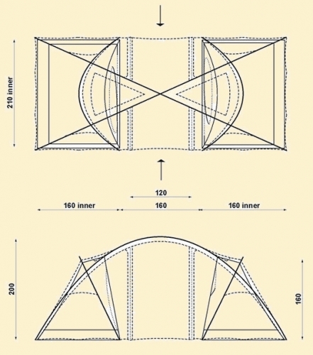 rozměr vnitřního stanu | 210x160 (2x)/160cm |