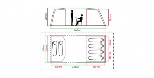 Revoluční technologie odolných nafukovacích stanů se stává realitou. Postavte rodinný stan Valdes 6 sami a během několika minut! Stačí jen nafouknout vysokotlaké vzduchové válce a můžete bydlet. Komfort ubytování dodávají nejmodernější technologie Blackout Bedrooms™ a vyklápěcí dveře na pantech.