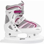 Dětské nastavitelné brusle Stavitelné holčičí brusle v povedené kombinaci bílé a růžové barvy. Houževnatý materiál vhodný i do nízkých venkovních teplot.