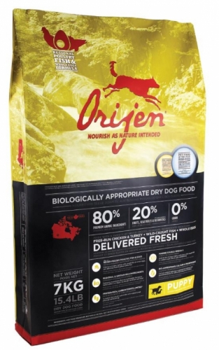 ORIJEN PUPPY je první biologicky vhodné krmivo pro štěňátka především malých a středních plemen psů, jediné krmivo, které neobsahuje vůbec žádné obiloviny ani další pro psy nevhodné přísady.