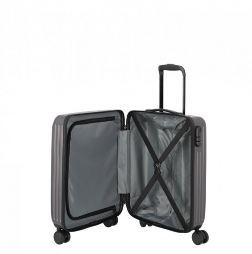 Čtyřkolečkový skořepinový palubní kufr s integrovaným kombinačním zámkem vyrobený z robustního ABS plastu.