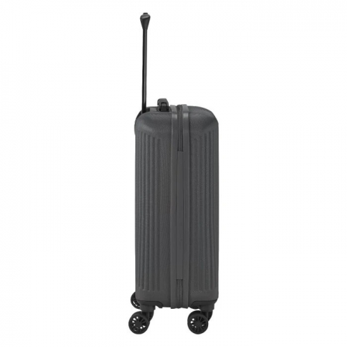 Čtyřkolečkový skořepinový kufr z robustního ABS plastu v trendy černé barvě vybavený integrovaným kombinačním zámkem.