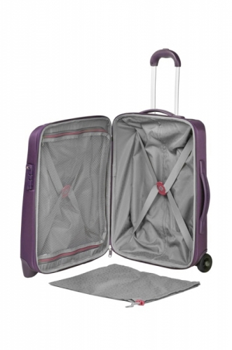 Kufr je vyroben novou kombinací měkkého a tvrzeného materiálu. Je opatřen dvěma kolečky pro snadnou manipulaci, výsuvnou nastavitelnou rukojetí a pohyblivým madlem. Jeho velkou výhodou je integrovaný zámek TSA, využitelný zejména při cestách do USA. Uvnitř jsou křížové upínací pásy na obou stěnách kufru, odnímetelná dělící síťovaná přepážka na zip. Z vnější strany je samostatná kapsa na zip vhodná na dokumenty, časopisy a drobnosti které chcete mít při ruce.