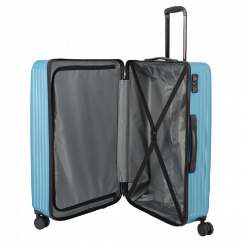 Čtyřkolečkový kufr s integrovaným TSA zámkem vyrobený z odolného ABS plastu.