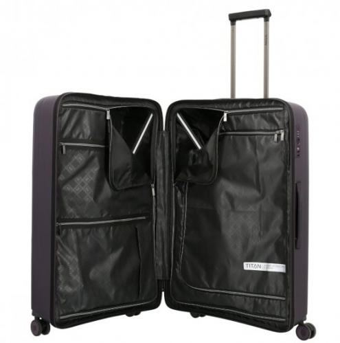 Milujete cestování a módu? Blýskněte se metalickým odleskem i luxusní výbavou neodolatelně přitažlivého a nad míru odolného kufru Titan Looping! Interiér se dvěma samostatně balitelnými částmi je vybaven přepážkami na zip, kapsami, přihrádkou na košile a popruhy, které spolehlivě udrží věci na svém místě. Díky nepromokavému zipu zůstanou také v suchu. O bezproblémové cesty letadlem a bezpečí výbavy se postará kódový TSA zámek. Komfortní jízdu v terénu i rychlou manipulaci zajistí plně otočná kolečka a lehce výsuvné madlo.