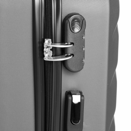 Skořepinový kufr z ABS plastu na čtyřech kolečkách.