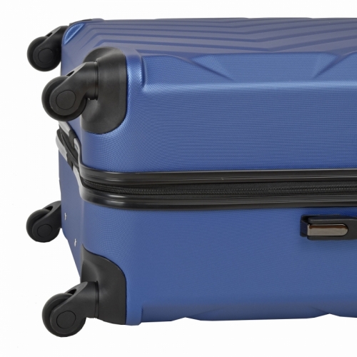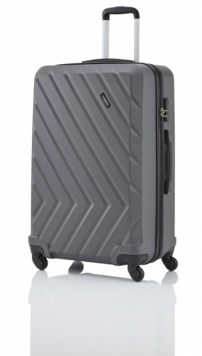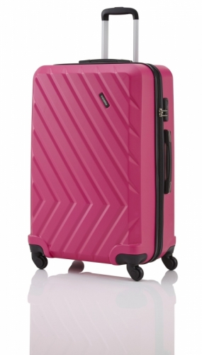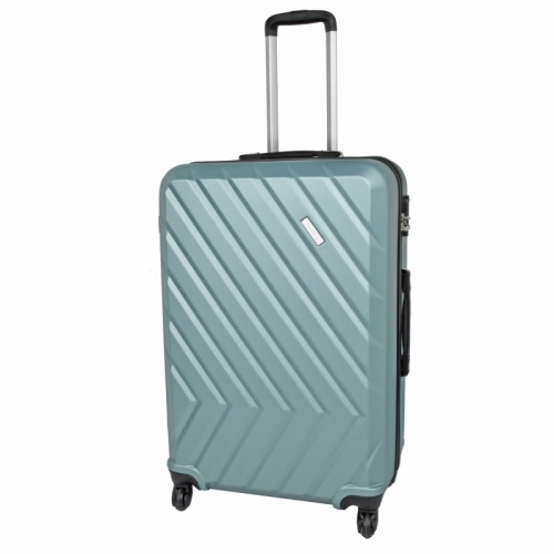 Skořepinový kufr z ABS plastu na čtyřech kolečkách.