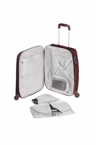 Cestovní kufr na čtyřech kolečkách pro snadnou manipulaci. Má vysouvací rukojeť, pohodlná ruční madla a opěrky - ,nožičky, pro dobrou stabilitu. Z přední strany má velkou kapsu na zip. Dále je ve vnitřním prostoru upínací křížový pás pro fixaci obsahu a průsvitné kapsy - přepážky na zip pro dobrou přehlednost. Kufr je opatřen integrovaným zámkem TSA, což usnadňuje letištní kontroly zejména při cestování do USA.