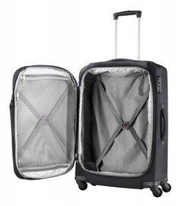 Kufr je vyroben z odolného textilního materiálu polyester s výztuhou z ABS hmoty. Tato hmota, která tvoří boční stěny zajišťuje maximální ochranu, enormní pevnost a odolnost při zachování nízké váhy. Kufr je opatřen integrovaným kódovým zámkem TSA, který je vhodný zejména pro cesty do USA. Dále má vysouvací, nastavitelnou rukojeť, dvě madla, čtyři kolečka pro snadnou manipulaci. Uvnitř je křížové upínání pro fixaci obsahu a síťovaná dělící, odepínací přepážka. Jeho povrch se snadno udržuje. Sympatický je i jeho elegantní vzhled.
