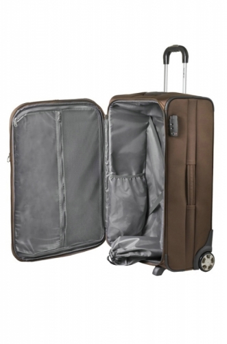 Cestovní látkový kufr kabinové velikosti je vyroben z odolného polyesteru. Jeho vnitřní část je vybavena křížovým upínáním výborným pro fixaci oděvu na obou stranách a síťovou odepínací přepážkou na zip. Z přední strany je velká samostatná kapsa. Pro větší bezpečnost má zavazadlo integrovaný kódový zámek TSA, který je výhodný zejména pro cesty do USA. Kufr má vysouvací rukojeť, dvě ruční madla, opěrné ,nožičky, pro dobrou stabilitu a dvě kolečka pro snadnou manipulaci.